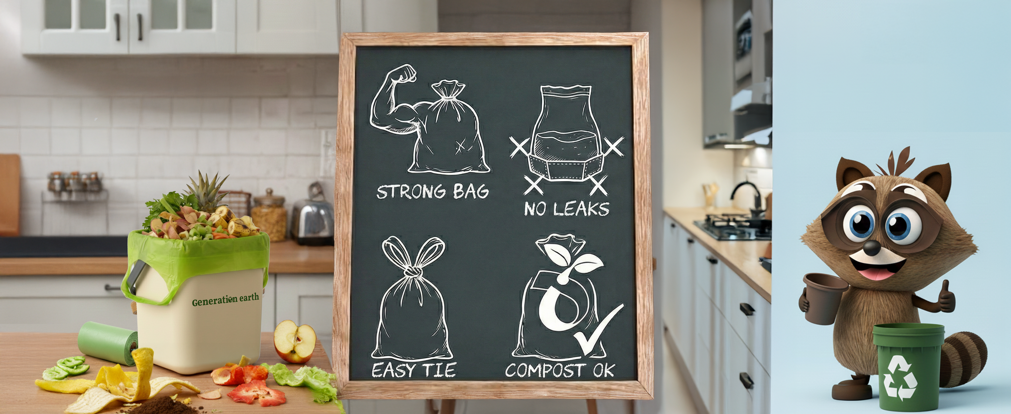 - 🌽 HIGHEST BIOBASED CONTENT: Generation earth Compostable Bags are made from plant starches and contain NO polyethylene. Bags are durable, nontoxic, easy to use and great for the environment.