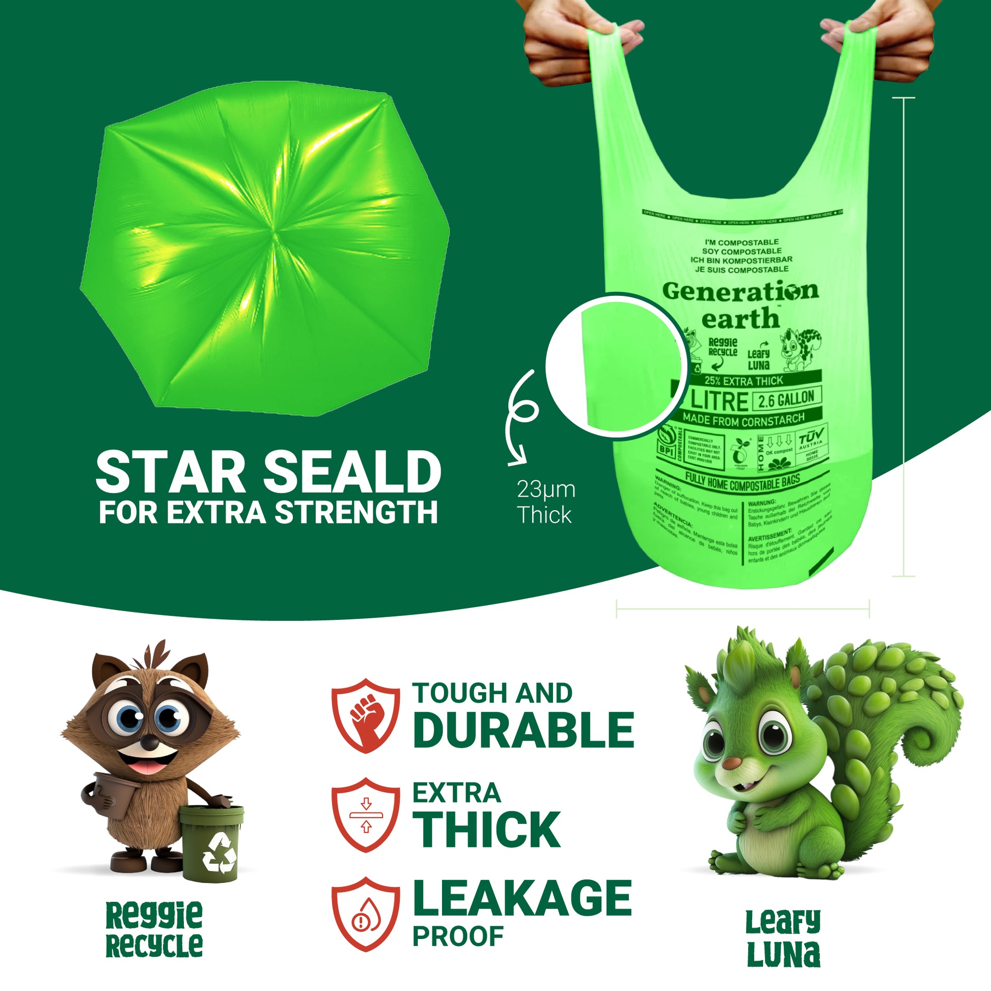 - 🌎 Generation earth compostable bags are the ethical choice for a cleaner environment and an ECO-FRIENDLY future. Thank you taking care of our planet for FUTURE GENERATIONS by replacing plastic with our sustainably manufactured, compostable bags.